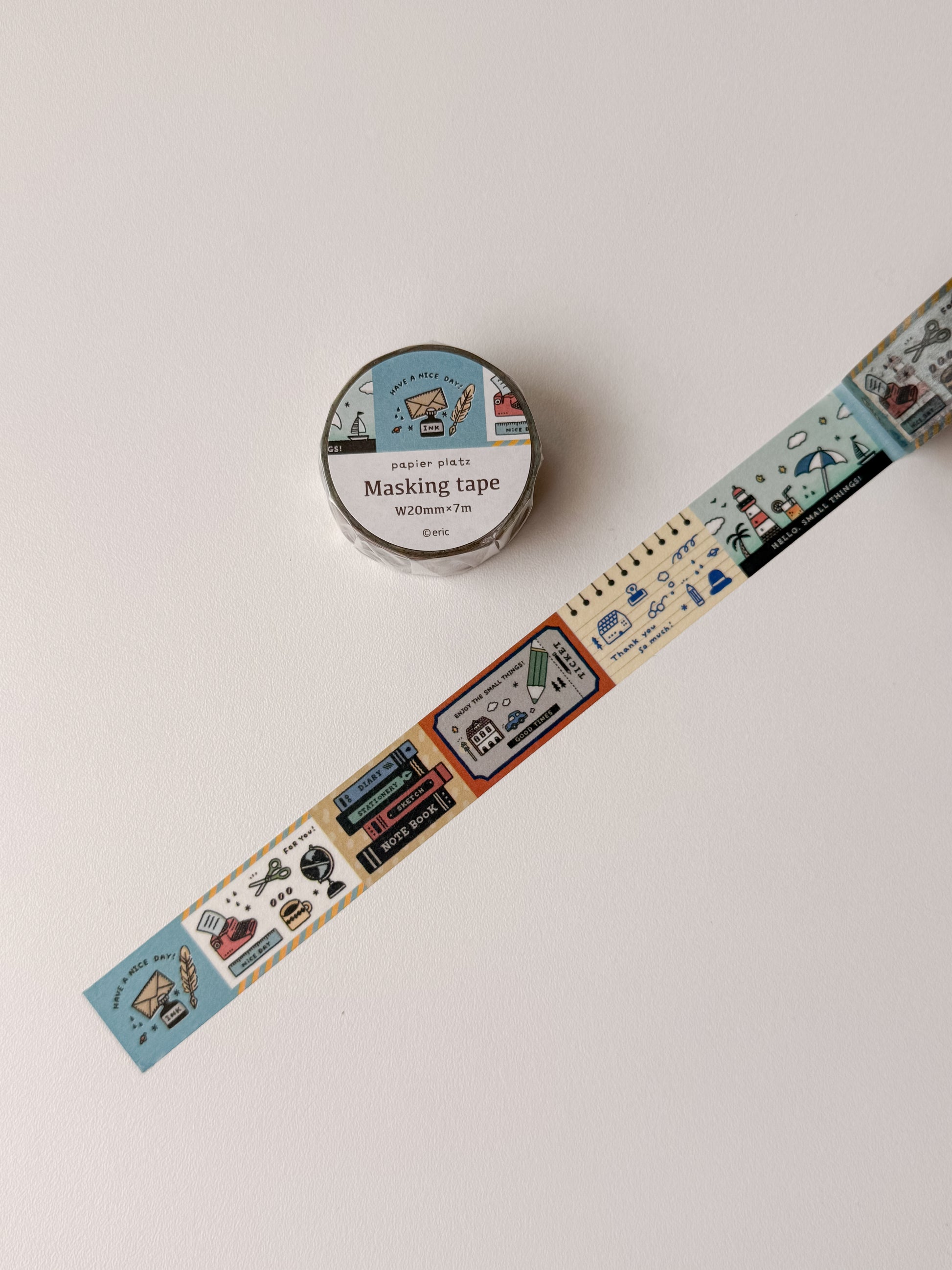 The "Hello Small Things" series Japanese washi tape by Erico Matsubara features a lovely pen and ink-themed design with gold foil details.