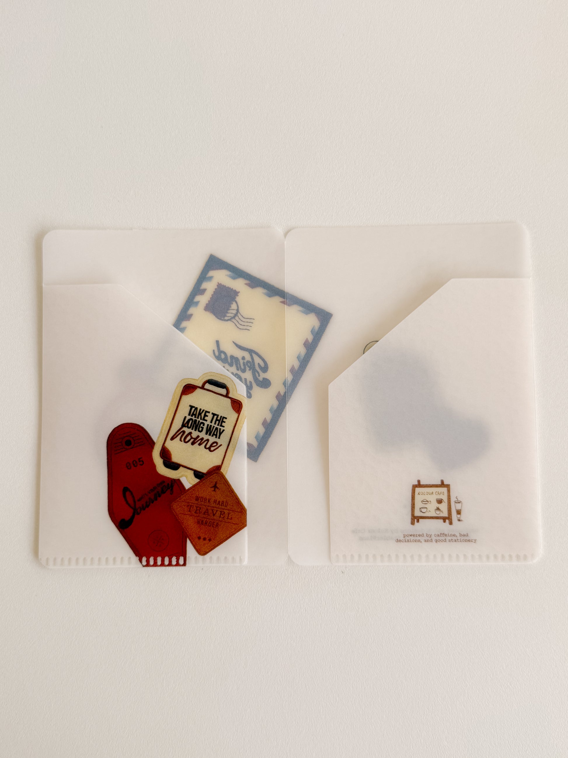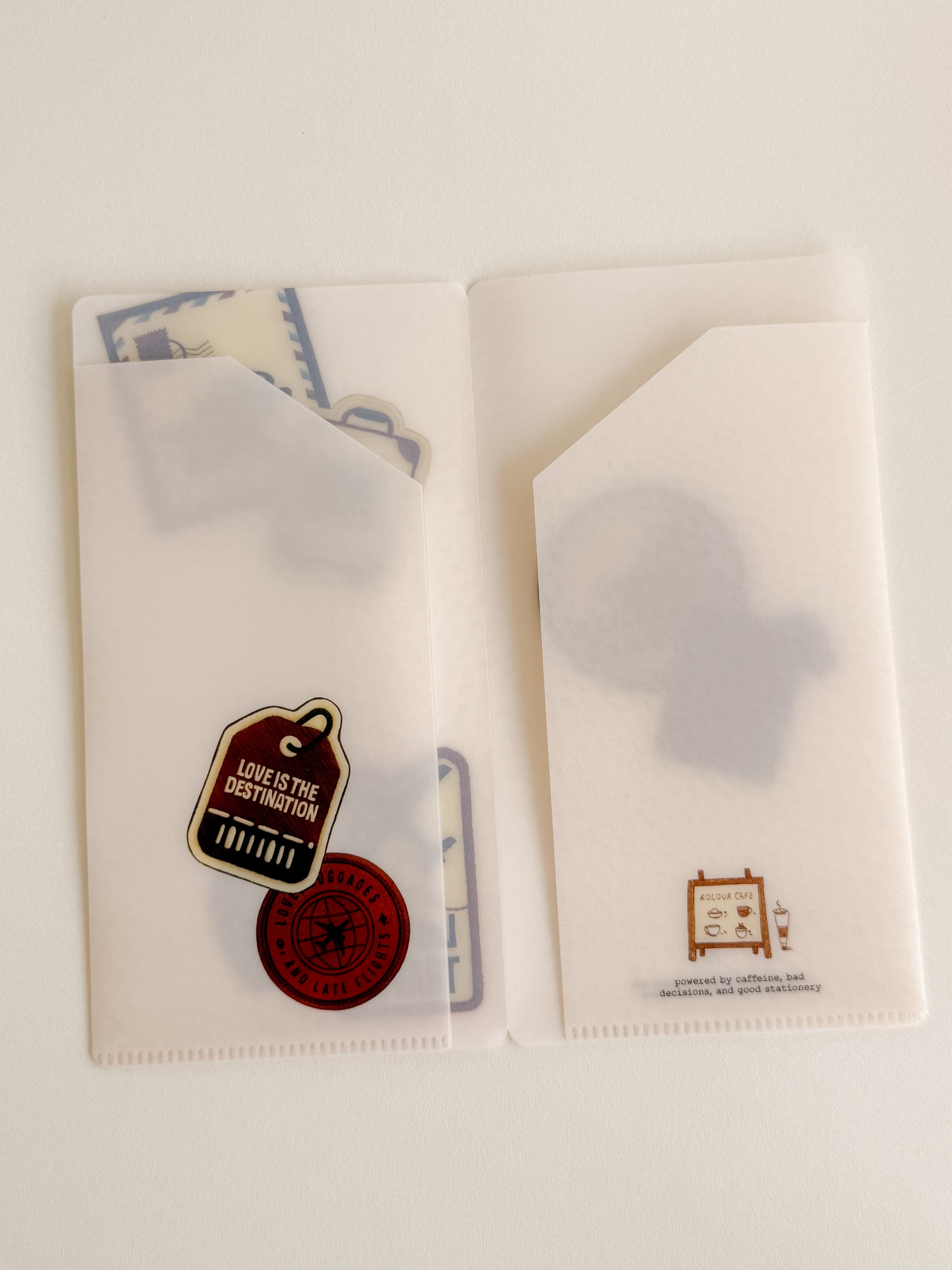 Organize your ephemera and stickers in style! It's the perfect add-on to all your Traveler's Notebooks. journal - be it standard or passport size! It's made with thick matte PVC material so it will last you in many trips to come