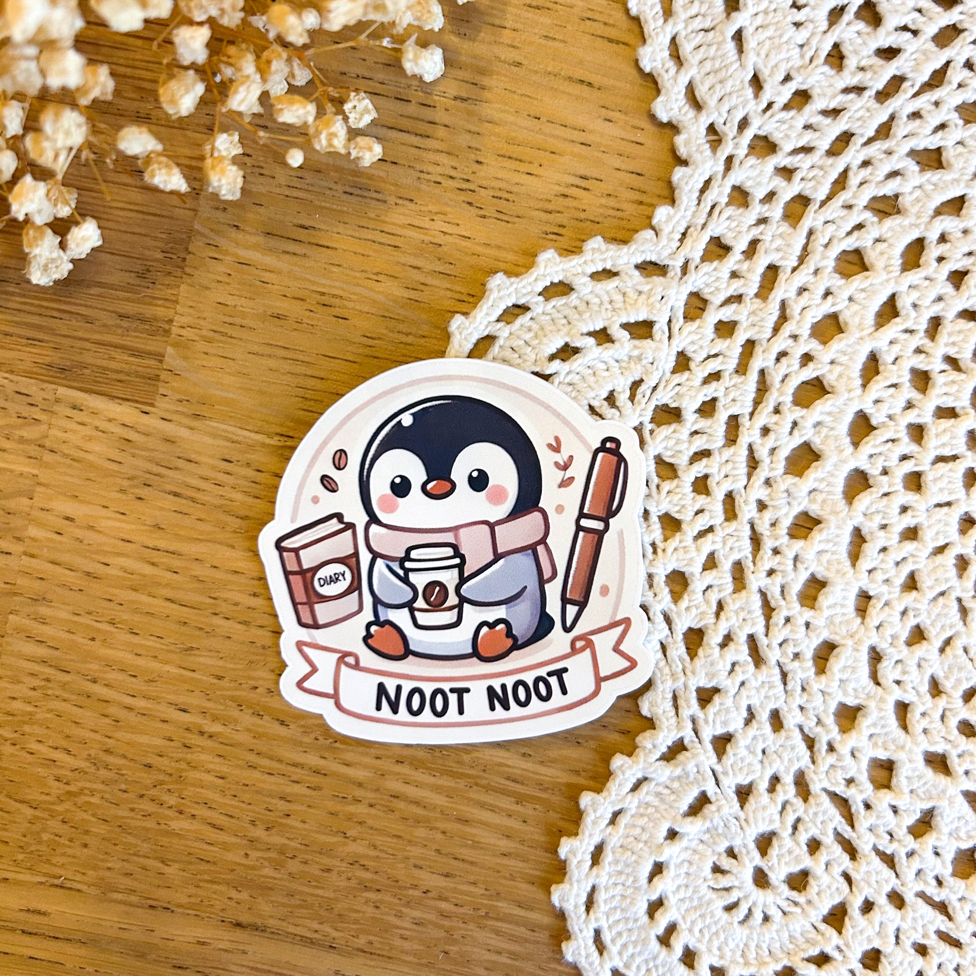 Die cut Noot Noot sticker.