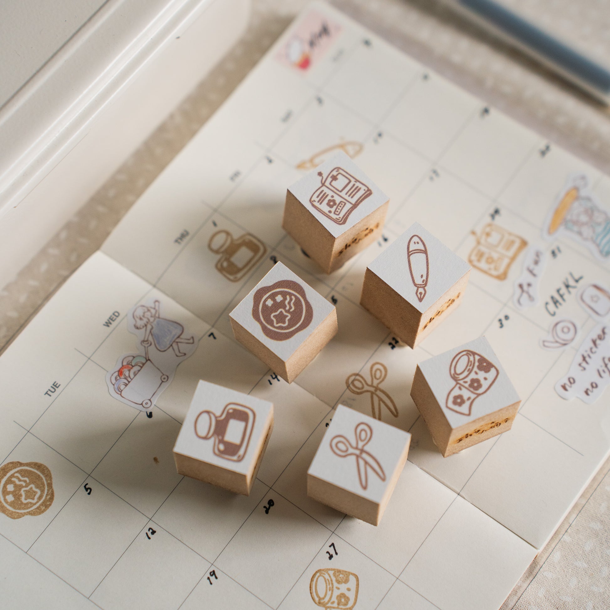 Add a cozy touch to your planner, journal, or snail mail with these adorable wooden stamps by Sho Little Happiness. Each stamp features a cute stationery icon — from washi tape to scissors — in warm brown tones that pair beautifully with any minimal or soft journaling style.