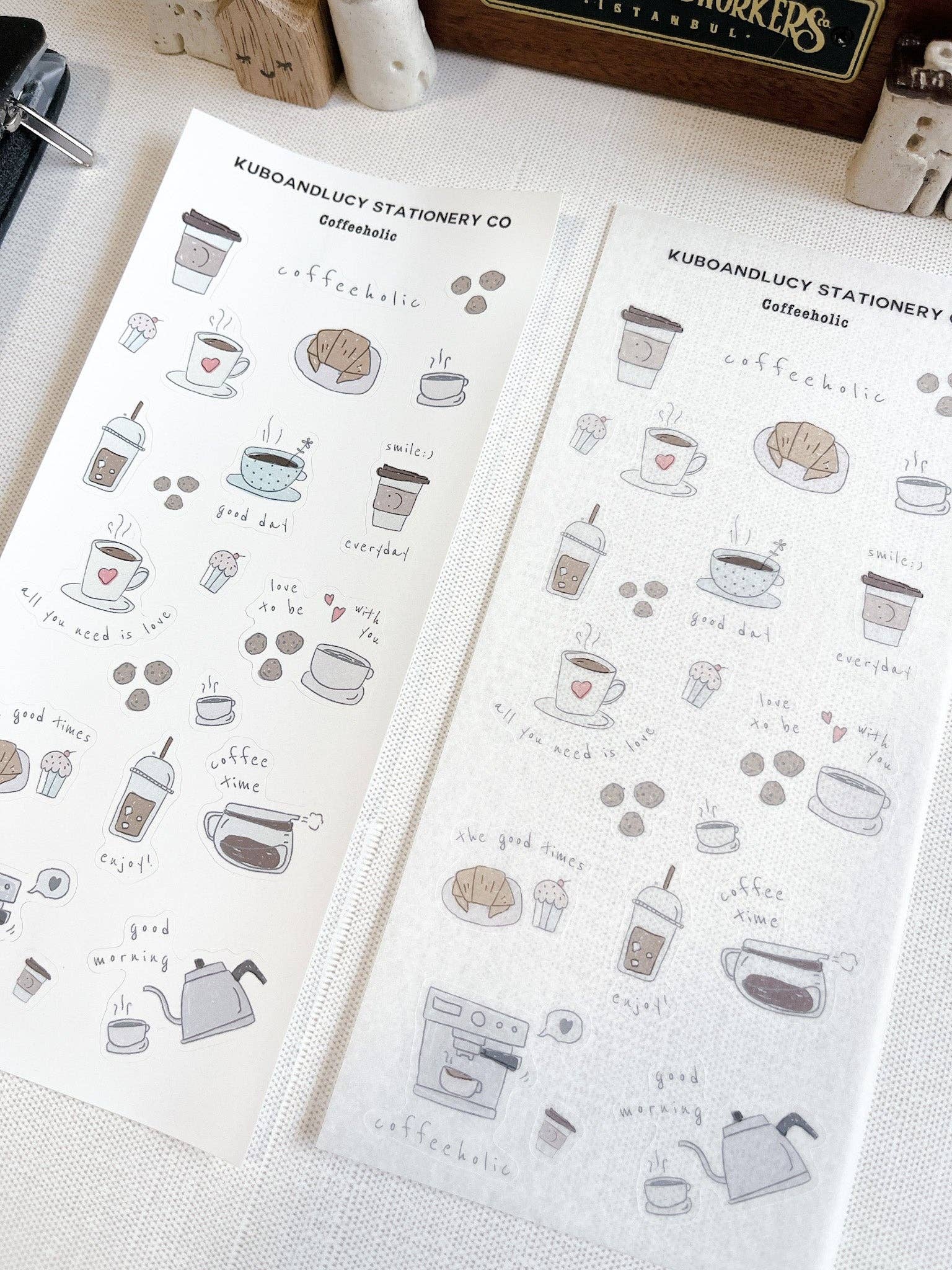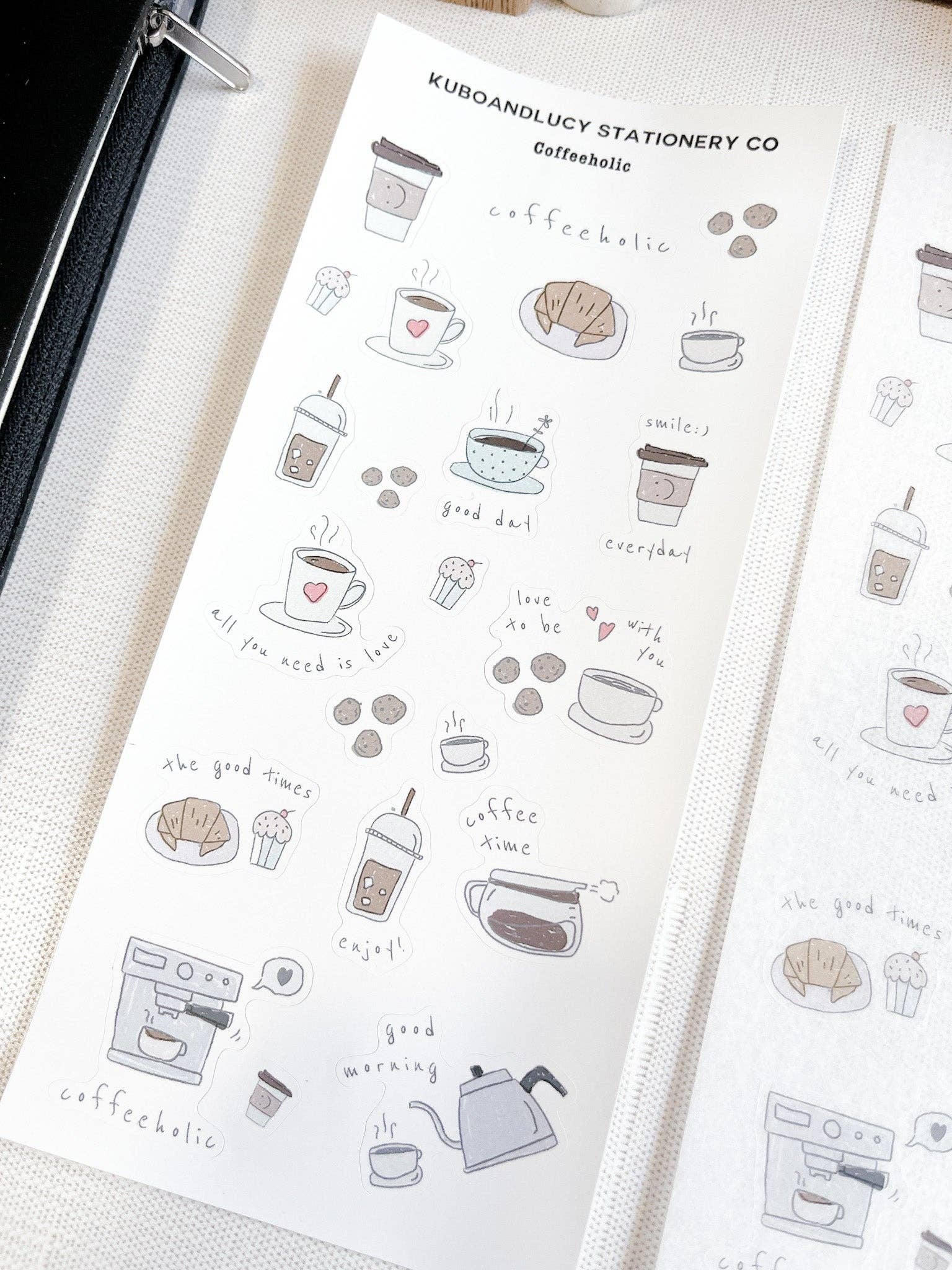 - Een serie stickervellen met koffie-illustraties